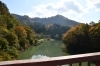 県道1号線から公園を結ぶ歩行者用吊り橋「オロセのつり橋」から眺める和賀川の紅葉