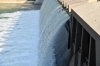 ダム湖内にある貯砂ダムから落ちる水が