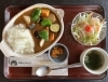 今回は「季節の野菜カレー」おすすめにありました「ミニ展勝地ラーメンとミニカレーセット」「あずきもち」を頂きました。季節の野菜カレーはカボチャ、山芋、ピーマンなど大きな野菜達がゴロゴロと入っておりかなりスパイシー!野菜の甘みとカレーの辛さがより旨みを引き出していて進む美味しさです。